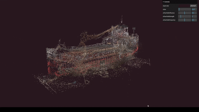 The hardest Three.js project I've ever done so far, showcasing GPGPU flow field particles that is very performant because it utilize GPGPU to save the particle's 3D coordinate (X, Y, Z) into a dynamic 2D texture color (R, G, B).